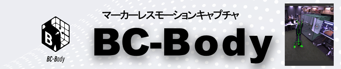 マーカーレスモーションキャプチャ「BC-Body」は、被験者にセンサーやマーカーを装着せず、設置したカメラ映像から骨格を検出して人の動きを数値化できるシステムです。従来のボディスーツ着用や、マーカー貼り付けの現場の負担を最小化し、位置・姿勢・動線などをリアルタイムに可視化・保存可能です。